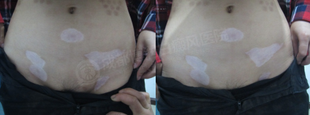 患者今年才16岁,读书的她起早贪黑,每天早上骑电动车去学校念书,晚上天黑了回来,在冬天更是冷的不行。她自觉压力很大,因为竞争很强,她一直都是以学习为中心,每天过着“朝五晚九”的日子。直到3个月前的某一天,她发现自己的腹部下方出现了奇怪的白色皮肤!这打乱了她原本的紧张生活,随着加重了一个月左右,家里人决定带她去医院查看。